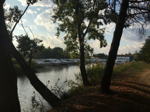 Nous commençons à vraiment être fatigués et nous ralentissons l’allure et nous en profitons pour pédaler plus doucement, traversant des quelques écluses et ports, tout en gardant le sourire.