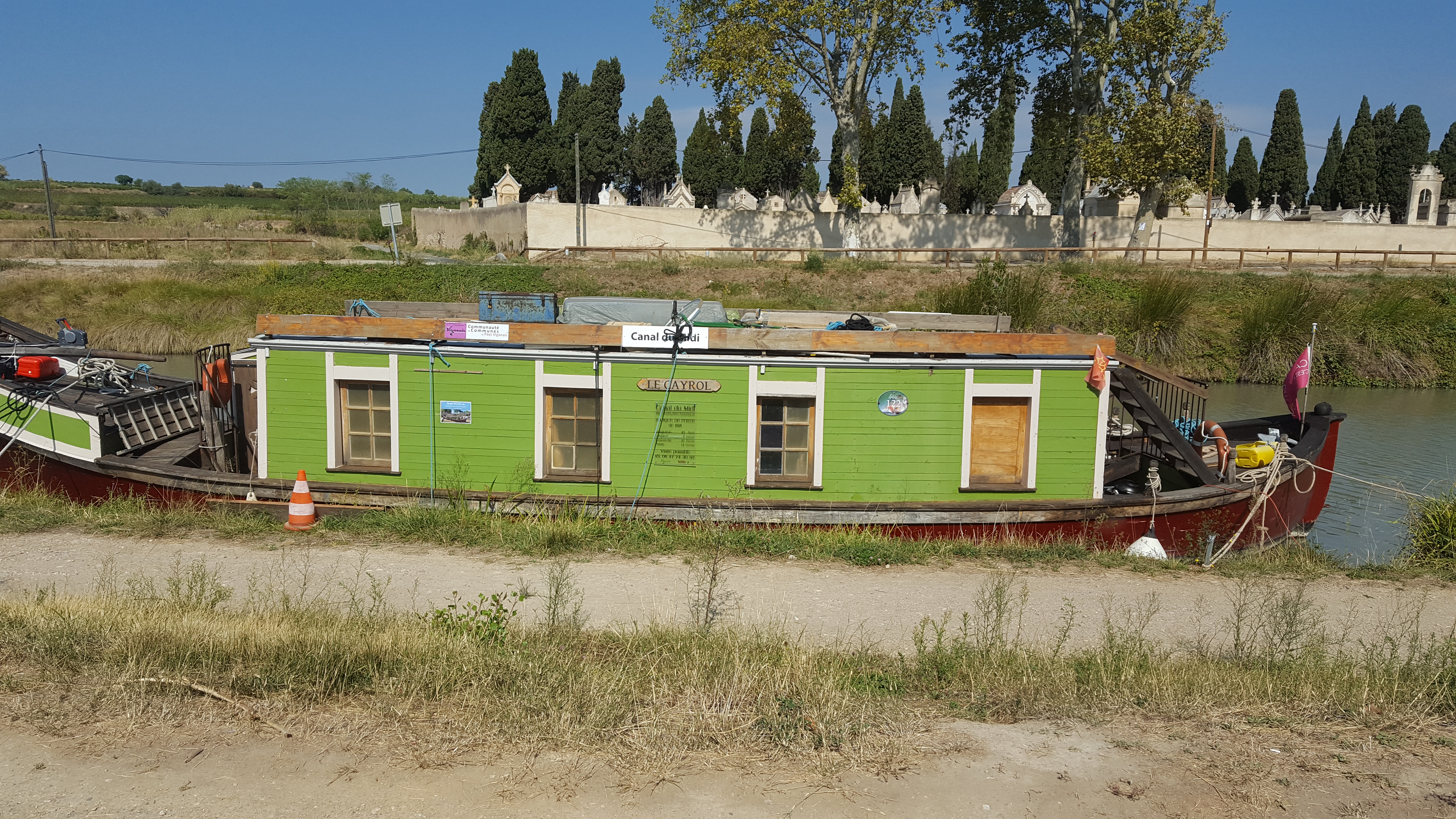 En émergeant d’un sommeil réparateur dans ce havre de paix et de confort, nous ne savons toujours pas si nous pousserons cette journée jusqu’à Sète pou pas. Nos jambes nous paraissent lourdes et les corps commencent à être douloureux. Nous verrons bien.