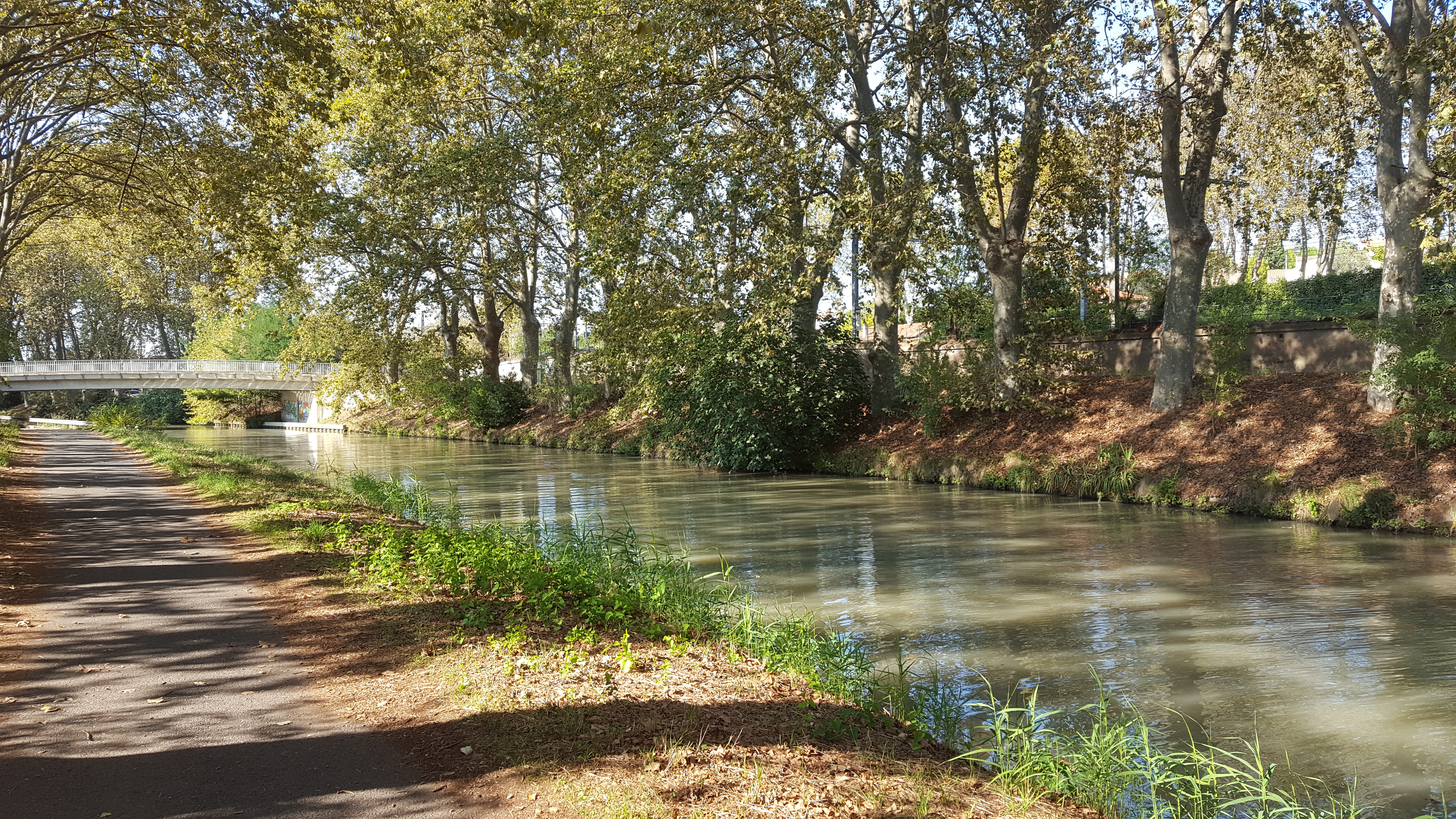Le Canal entre Béziers et Villeneuve-les-Béziers est particulièrement agréable, ombragé sur une bonne longueur, roulant, de bonne qualité. Cela permet de faciliter le roulage alors que le vent si fréquent de la région se fait sentir.