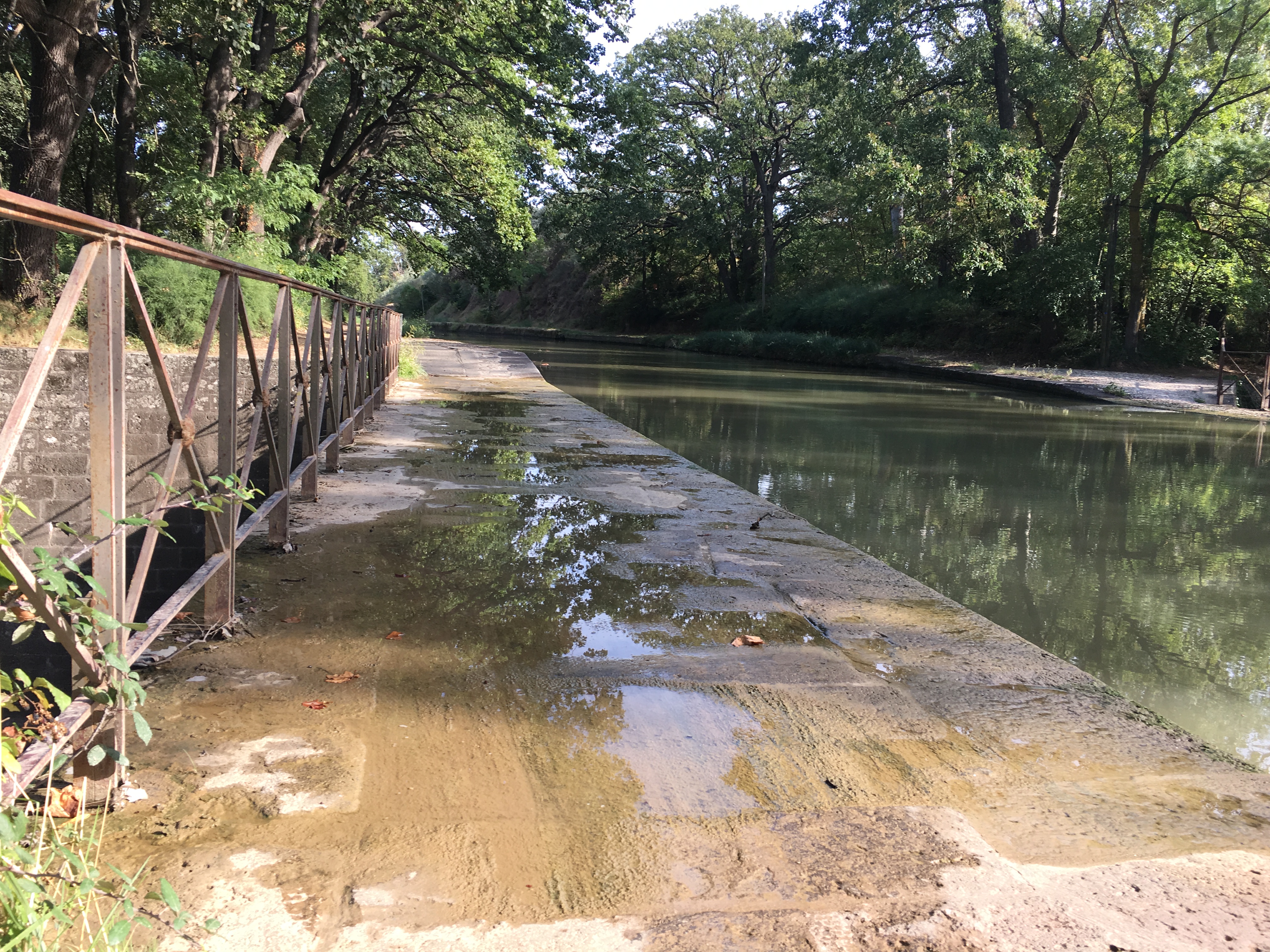 Quelques kilomètres après l’écluse de Puichéric, nous arrivons à la Redorte et aux Ouvrages de l’Argentdouble. Un ouvrage magnifique qui est à la fois un pont canal, un épanchoir et un déversoir. Pour les détails techniques et plus d’info : ici !
