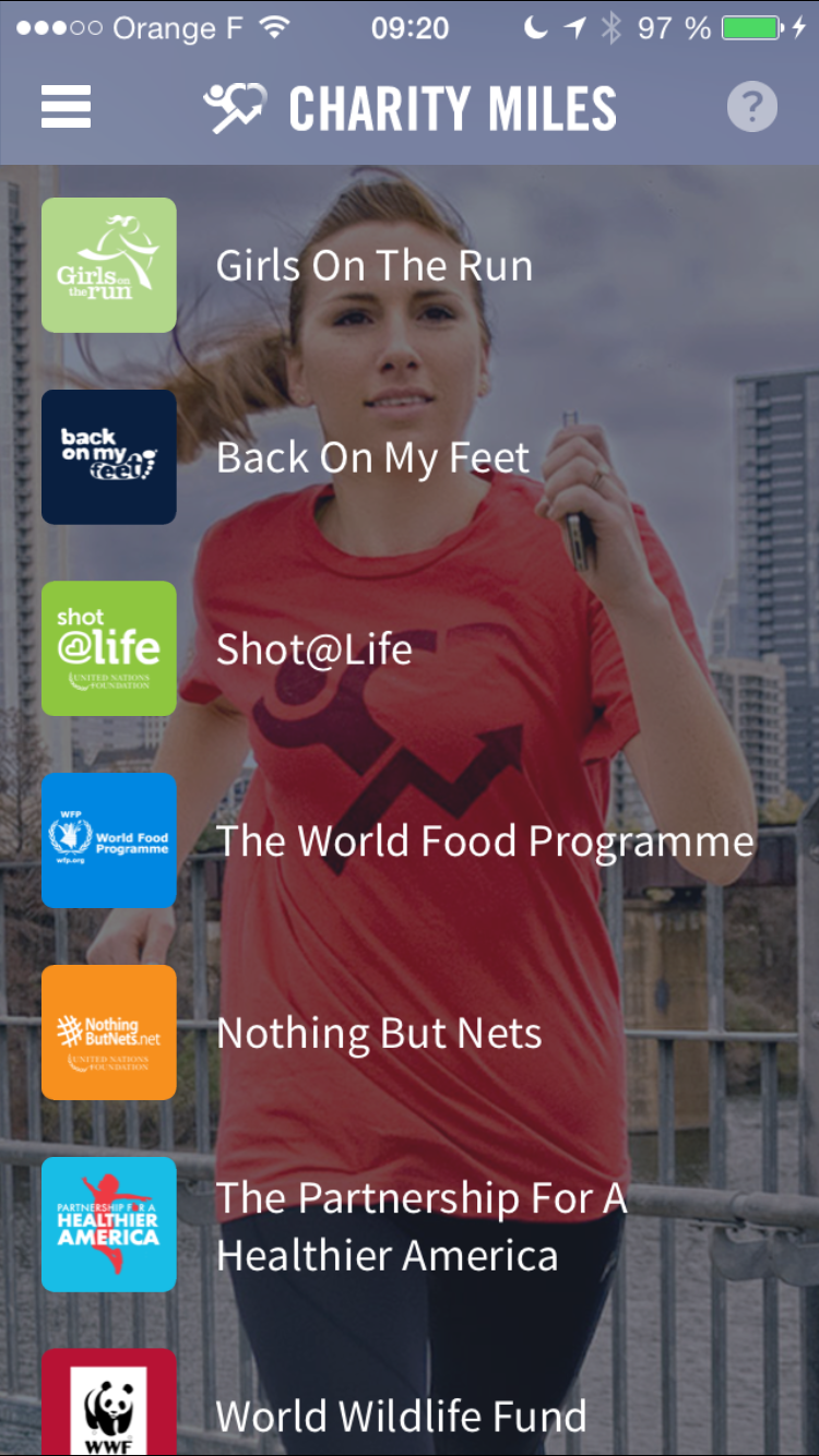 L’application Charity Miles est une application iOS et Androïd qui propose de reverser de l’argent à des oeuvres caritatives lorsque vous parcourez des kilomètres.